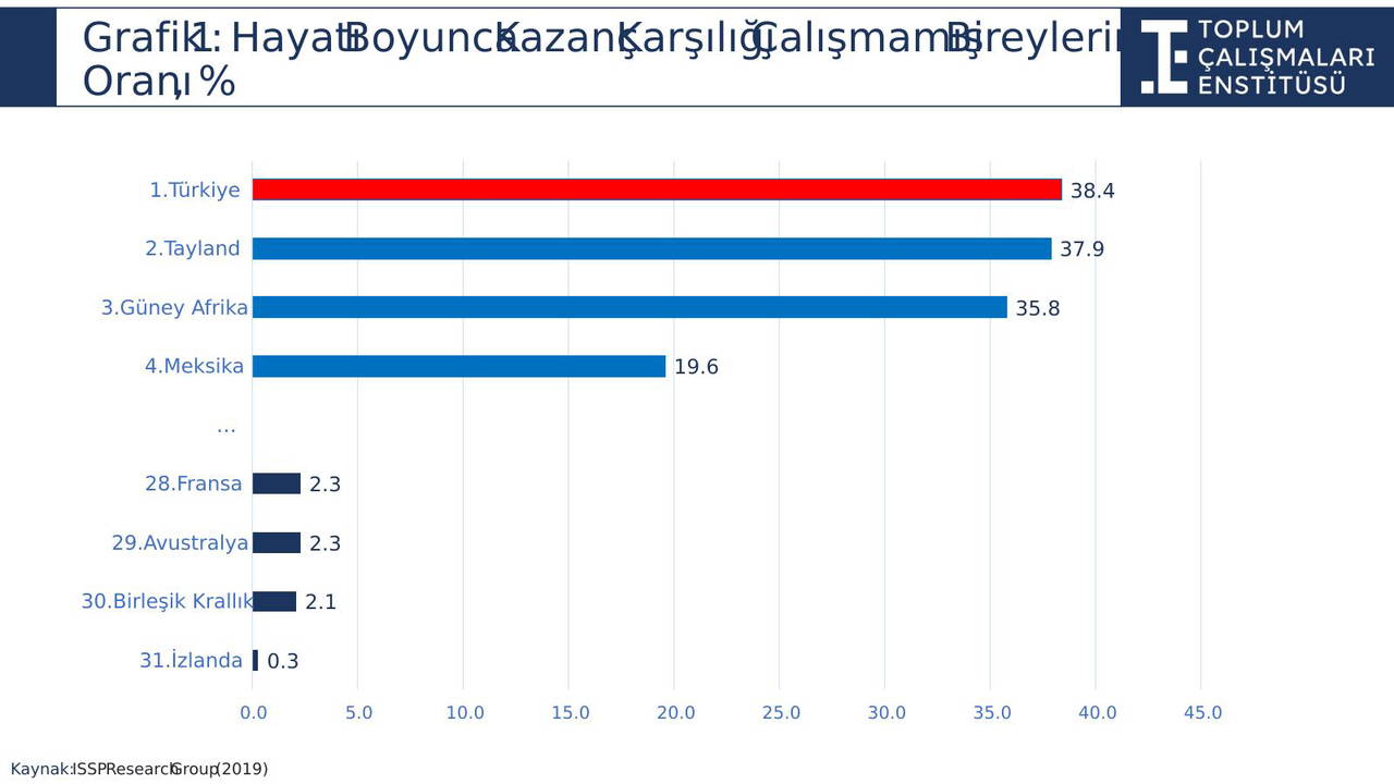 Öte yandan veriler, Türkiye’de aktif nüfusun yüzde 38.4’ünün, hayatı boyunca hiç kazanç karşılığı çalışmadığını gözler önüne serdi. Söz konusu oran Taylan’da yüzde 37,9, Güney Afrika’da ise yüzde 35,8 olarak ölçüldü.