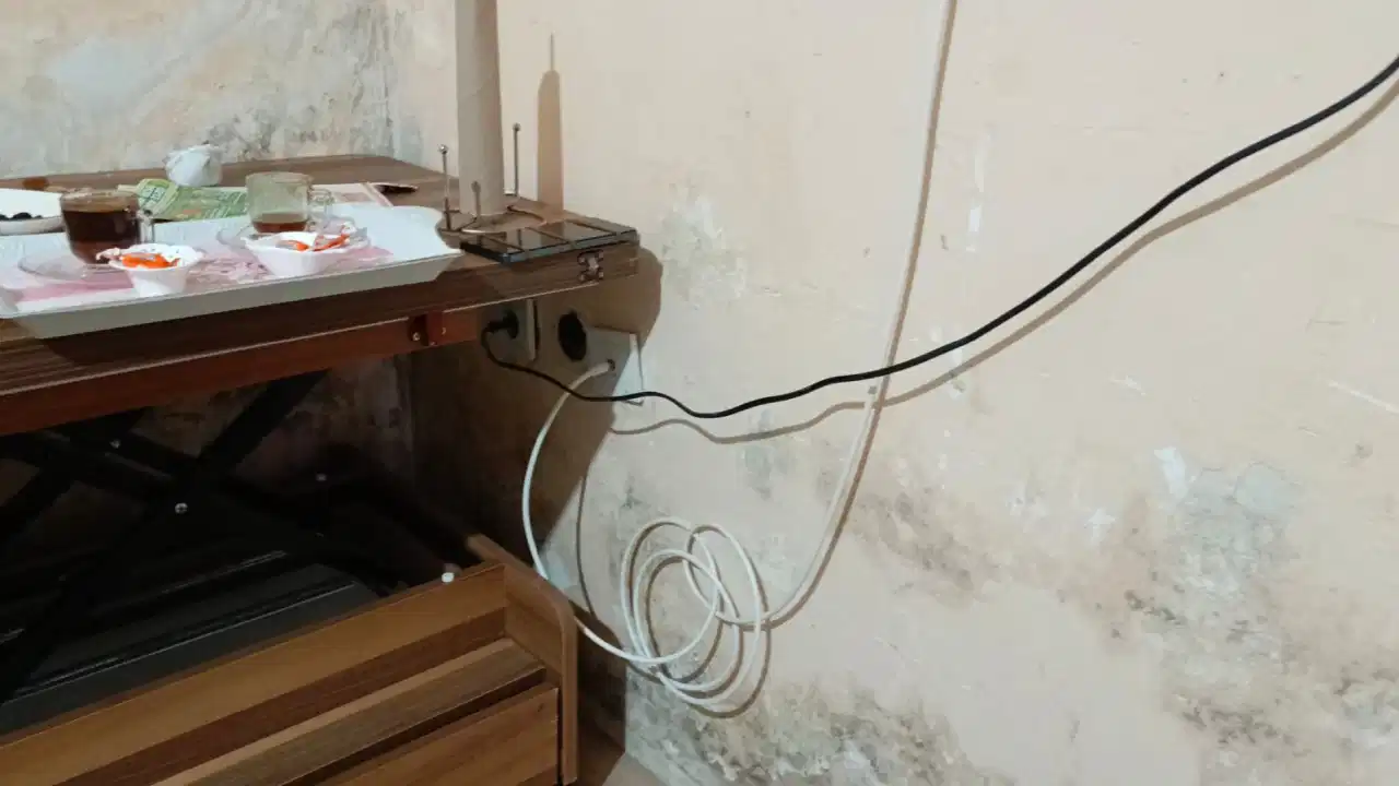 Binanın tüm pis su gideri bu daireden geçiyor. Geceleri borulardan gelen seslerle uyanıyorlar. Rutubet ve kokuyla baş etmek için Leyla, evin duvarlarını düzenli olarak kazımak zorunda kaldığını anlatıyor: