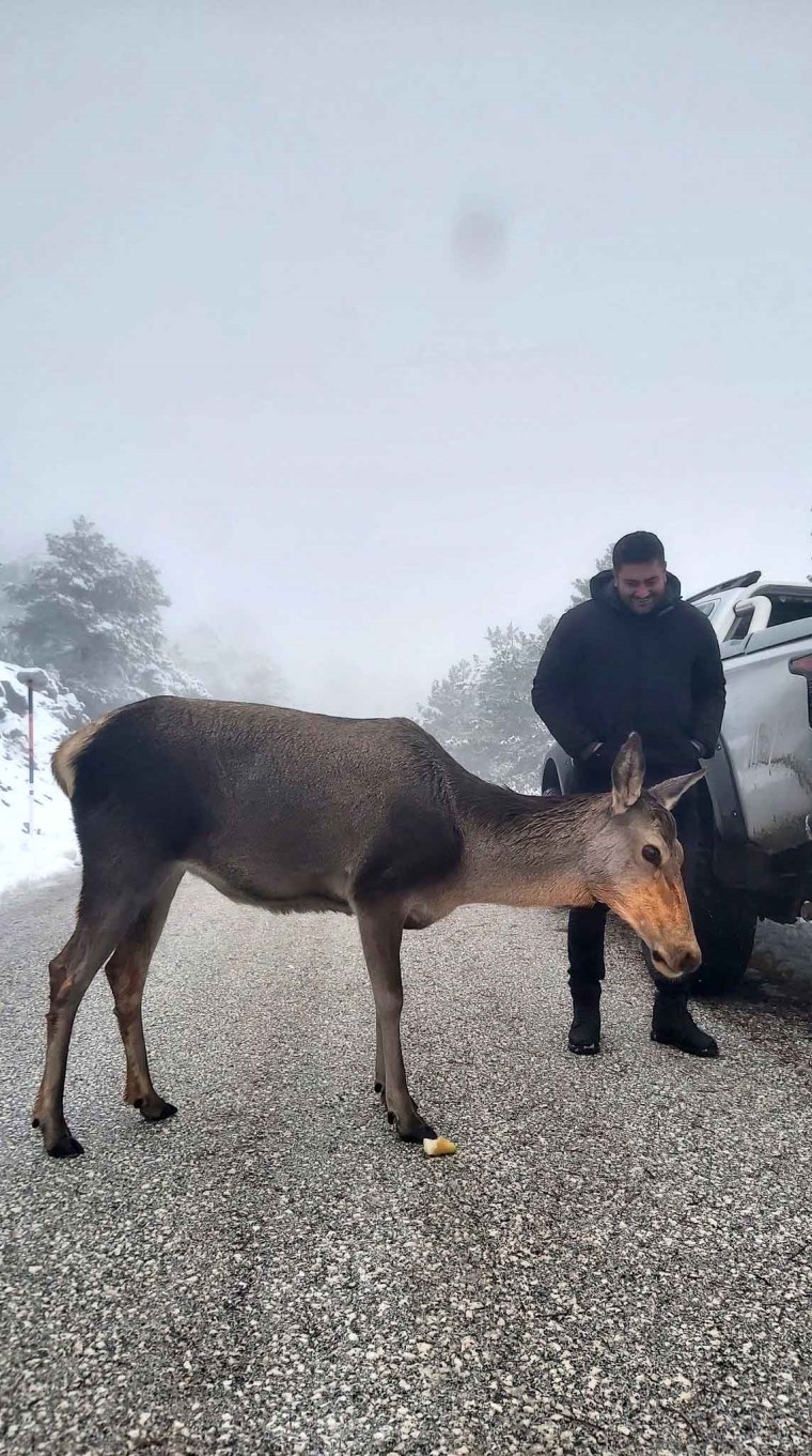 Yiyecekleri yiyen geyik bir süre sonra gözden kayboldu. Geyiği besleme anlarını cep telefonuyla görüntüleyen Avukat Ferdi Ay, “İlçemizin doğasına farklı bir güzellik kattı bu geyikler. Bunları koruyalım. Geleceğe taşıyalım, üresinler” dedi.