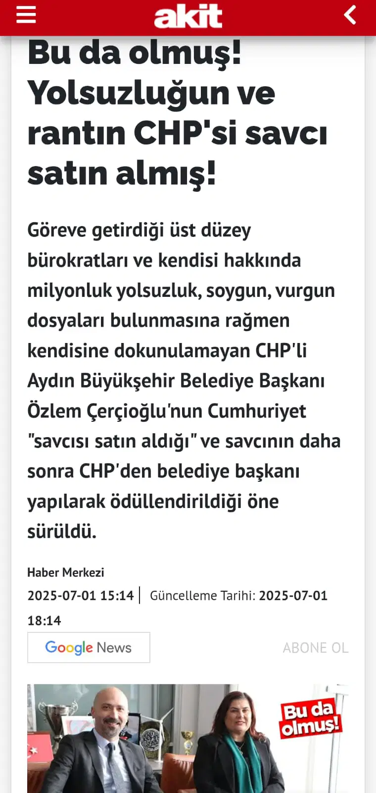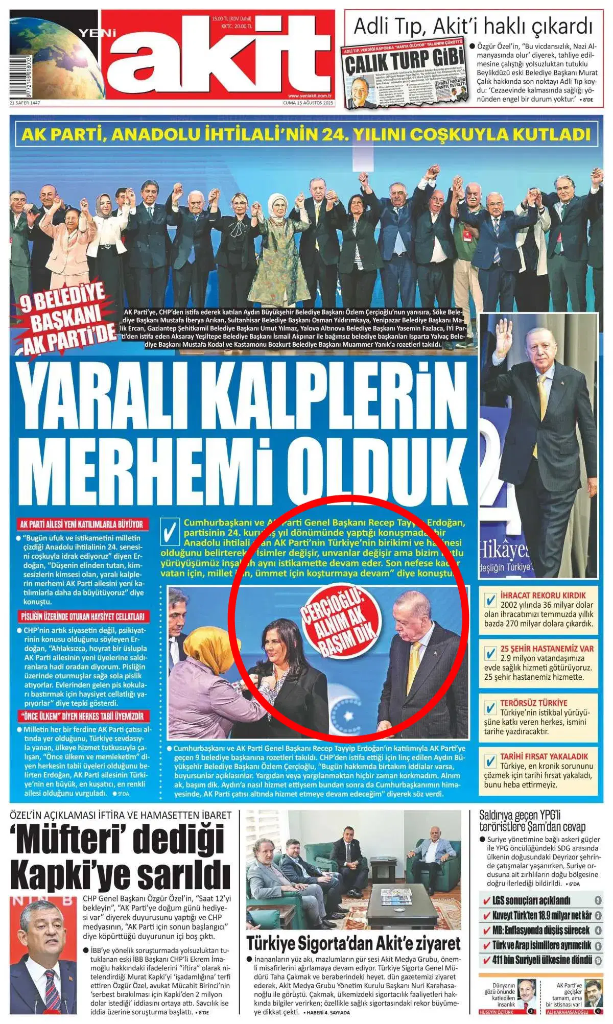 Çerçioğlu bu haberden 3 gün sonra AKP’ye geçince, Akit’in manşetinde Cumhurbaşkanı Recep Tayyip Erdoğan ile yan yana yer aldı.