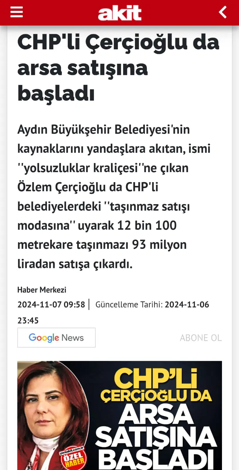 Aydın Büyükşehir Belediye Başkanı Özlem Çerçioğlu’nun CHP’den AKP’ye geçişi tartışılmaya devam ederken, haberlerinde kullandığı dille tepki çeken Yeni Akit’in bu Çerçioğlu hakkında yazdığı eski ve yeni yazılar dikkat çekti.