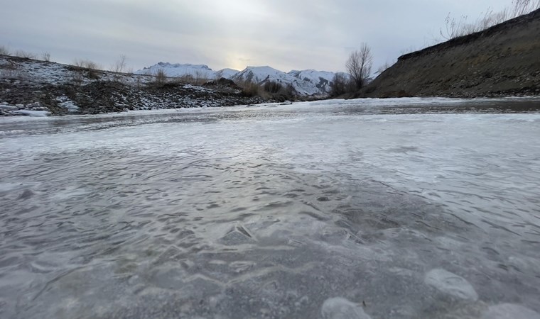 En düşük hava sıcaklığının gece sıfırın altında 5 dereceye kadar düştüğü ilçede dereler buz tuttu.