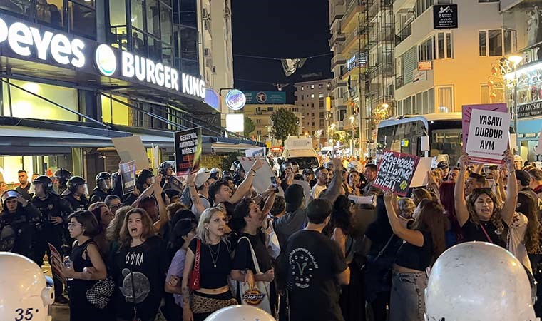 İzmir Yaşam Savunucuları da Türkan Saylan Kültür Merkezi’nin önünde toplanarak “Katil AKP hesap verecek”, “Hükümet istifa”, “Akp yaparsa katliam yapar” sloganlarıyla AKP Konak İlçe Başkanlığı’na yürümek istedi.