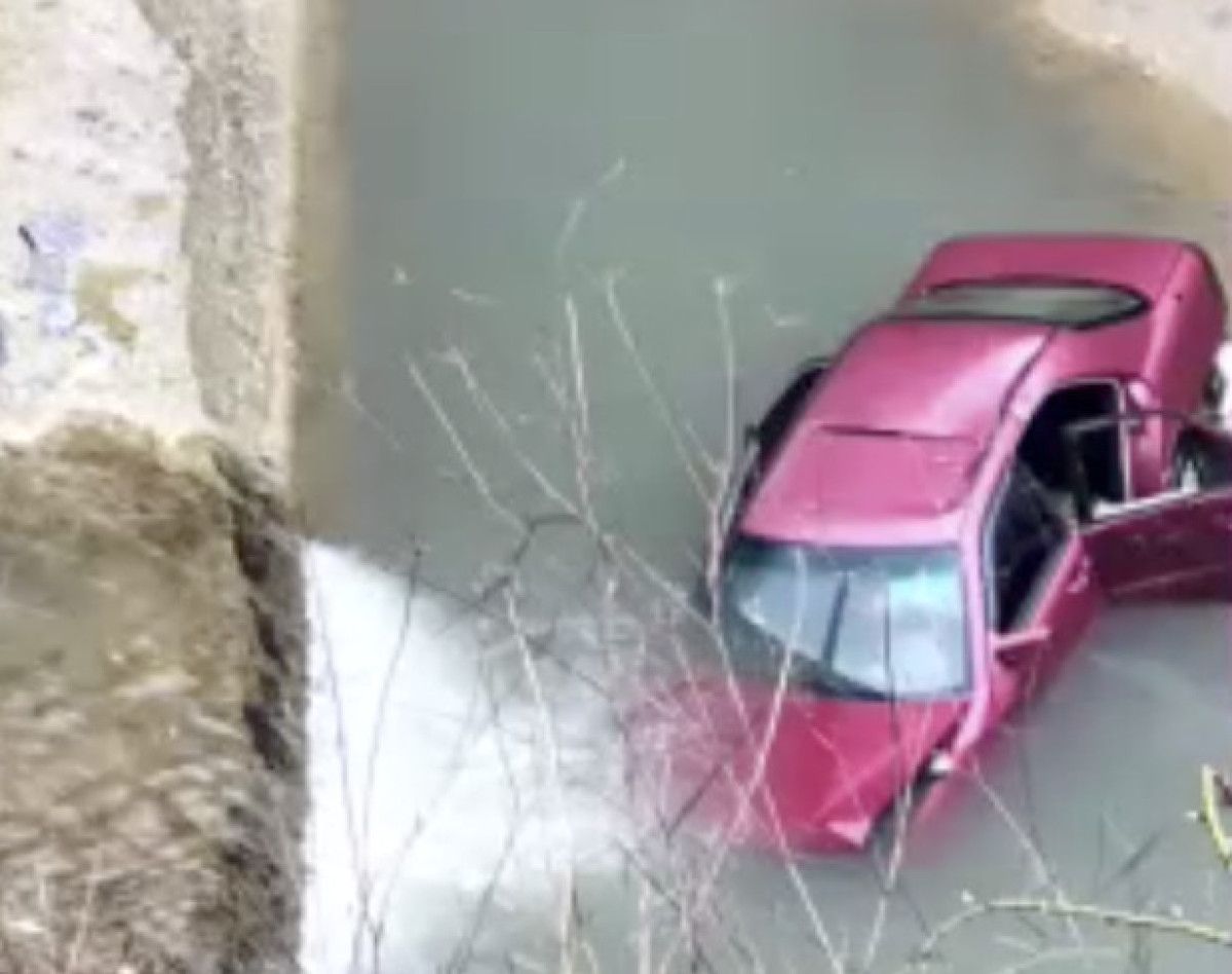 Sürücüsünün kontrolünü kaybettiği araç yol kenarında bulunan dereye devrildi.