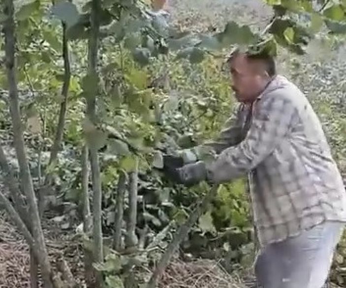 Fındığın toplama yevmiyesinin 500 TL olduğunu söyleyen Şahin, Muhterem Şahin, “Benim üretmiş olduğum bir kilo fındık, bir kilo çay almıyorsa, bir kilo peynir almıyorsa, bir kilo Zeytin almıyorsa buna uğraşmaya gerek var mı? Bunun için problemi kökünden halletmek lazım. Bahçeyi de bu şekilde kökünden hallediyorum. Allah Bismillah” diyerek baltayla fındık dalları kesmeye başladı.