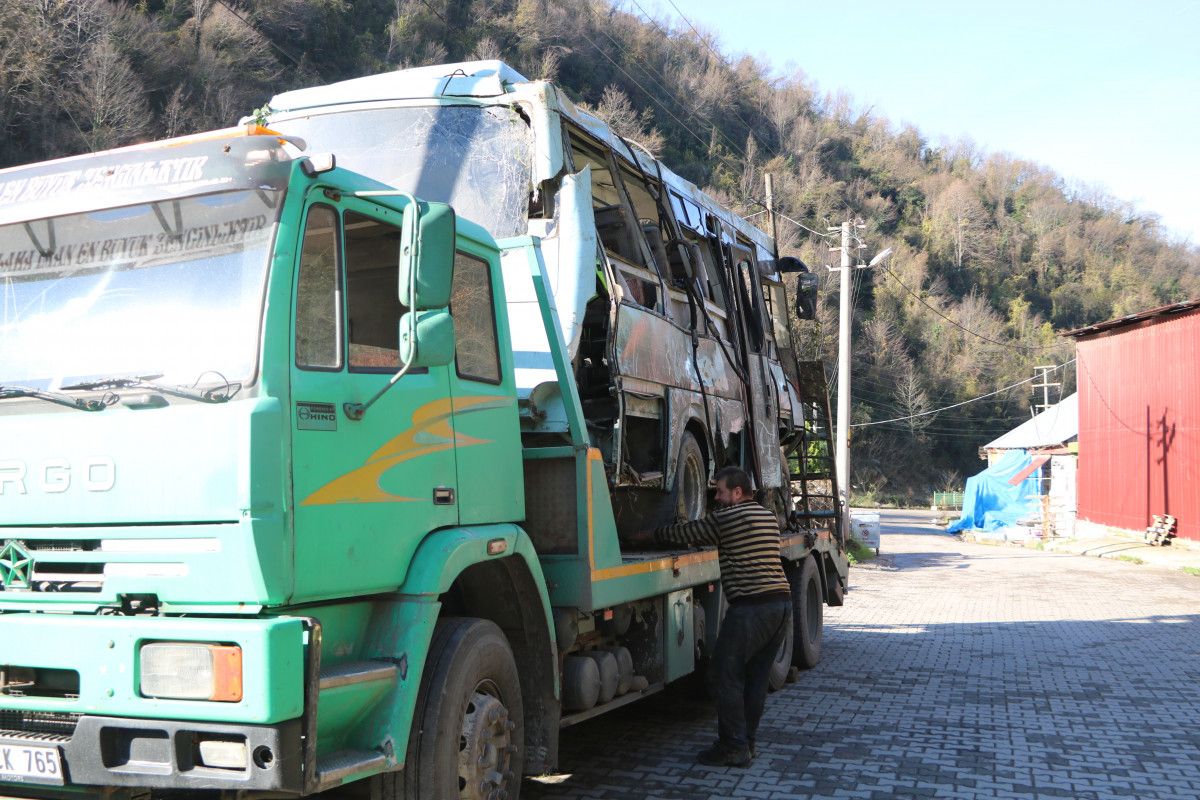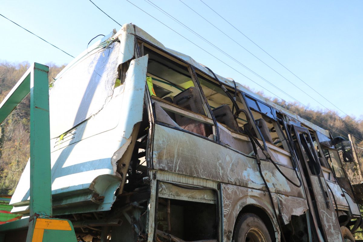 Ağır hasarlı olan midibüsün kar lastiğinin bulunduğu görüldü. Zonguldak Cumhuriyet Başsavcılığı tarafından makine mühendislerinden oluşan bilirkişi heyeti incelemelere başladı.