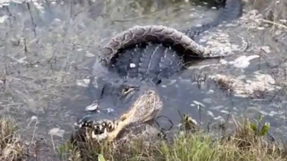 ABD’de 3 metrelik timsah ile pitonun ölüm kalım savaşı