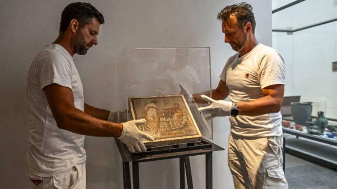 Milattan önce 1. yüzyıl ortaları ile milattan sonra 1. yüzyıl arasına tarihlenen mozaik, antik Roma döneminden kalma ve iki aşığın yakınlaştığı bir sahneyi tasvir ediyor. Uzmanlara göre eser, muhtemelen Pompeii’deki bir evin yatak odasının zeminini süslüyordu. Mozaik yıllar önce Wehrmacht’ta görevli bir Nazi yüzbaşısına İtalya’daki askeri görev sırasında hediye edilmiş. Subayın ölümünün ardından eser, miras yoluyla yakınlarına kaldı. Ancak yakınları, mozaiğin değerinin farkına vardıktan sonra Roma’daki İtalyan Carabinieri Kültürel Miras Koruma Birimi ile temasa geçerek, mozaiği yasal yollarla iade etmek istediklerini bildirdi.