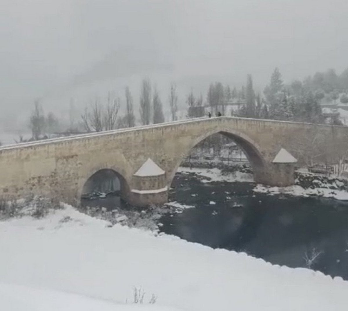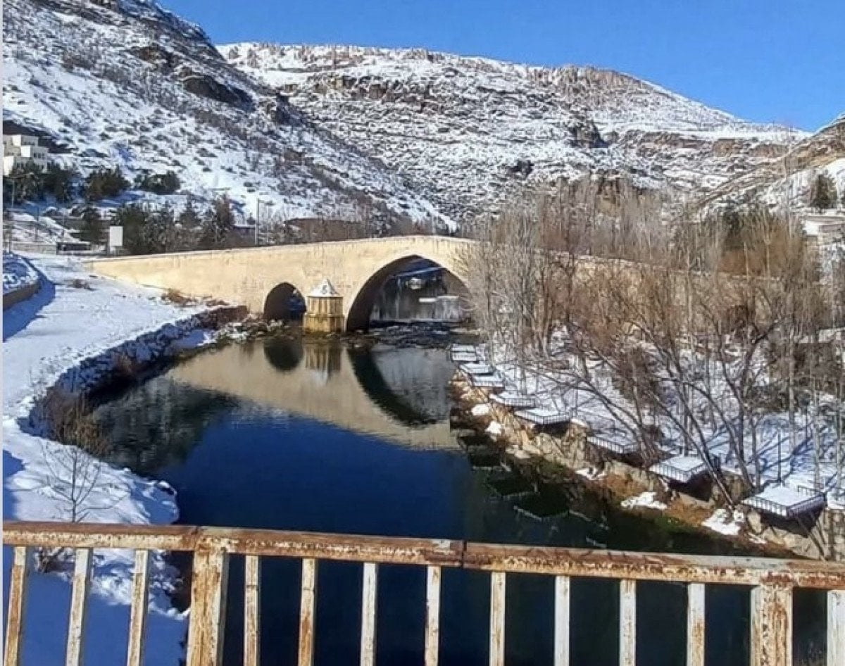 Diyarbakır’ın Çermik ilçesinde yer alan ve Artuklu mimarisinin önemli örneklerinden biri olan Haburman Köprüsü, yaklaşık 847 yıldır ayakta durarak geçmişle bugün arasında köprü kuruyor. İlçede son günlerde etkili olan kar yağışıyla beyaza bürünen tarihi yapı, kartpostallık görüntüler oluşturdu.