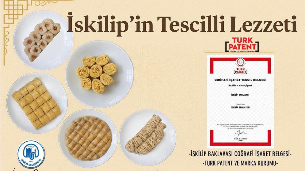 İskilip Belediyesi’nden yapılan açıklamada, ilçede dini bayramlar ve özel günlerde evlerde kadınlar tarafından hazırlanan, ticari olmayan geleneksel İskilip baklavası için Türk Patent ve Marka Kurumu’na (TÜRKPATENT) yapılan başvurunun sonuçlandığı duyuruldu.
