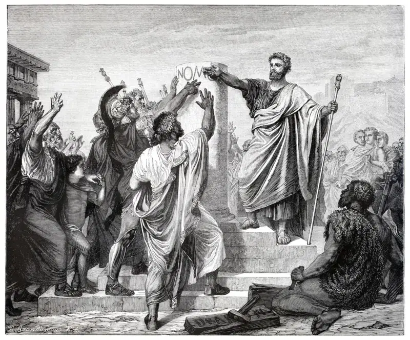 Britannica Ansiklopedisi’ne göre, MÖ 507’de Kleisthenes’in önderliğinde Atinalılar, yaklaşık iki yüzyıl sürecek bu benzersiz sistemi kurdular.
