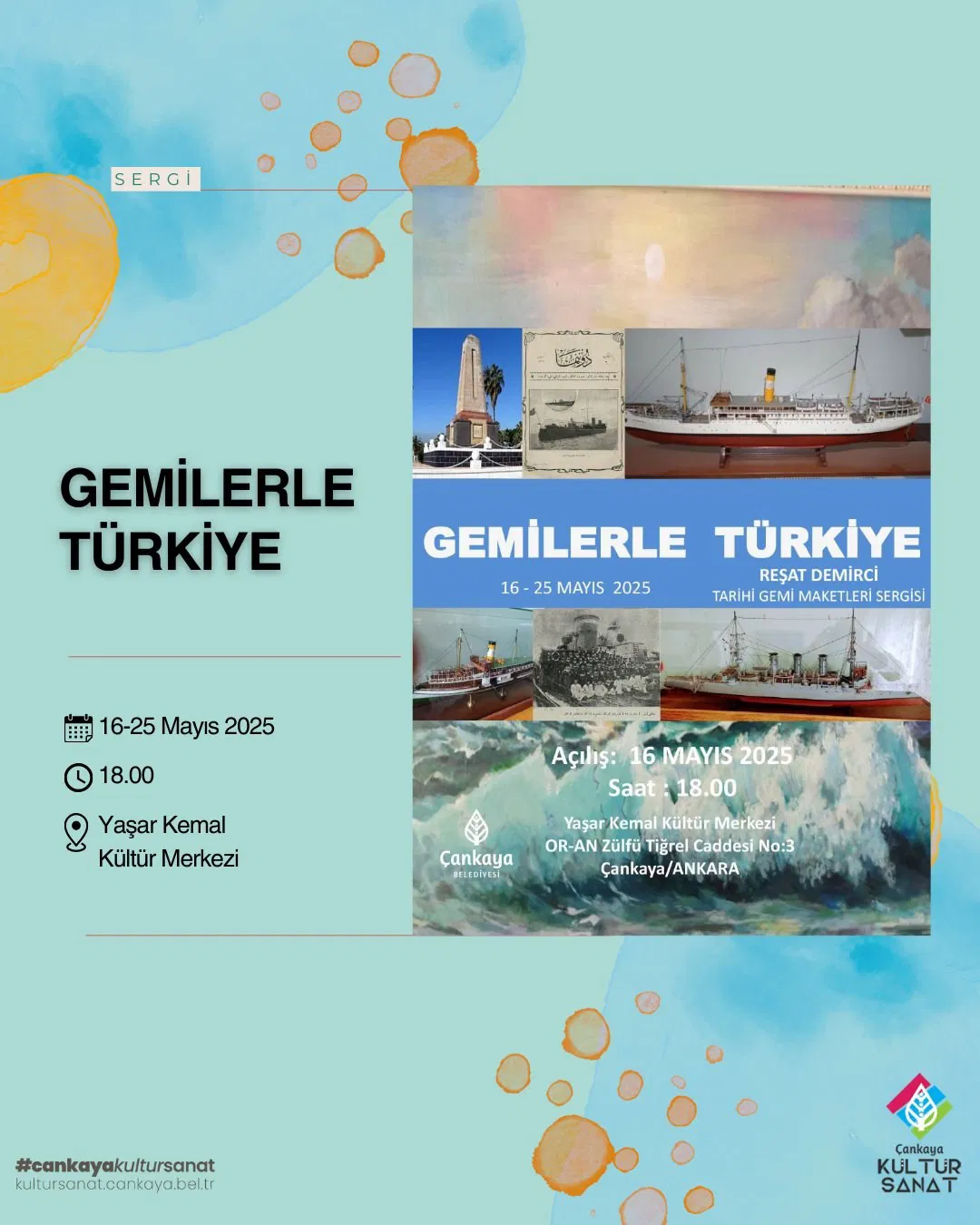 Çankaya Belediyesi Kültür Sanat Merkezleri tarafından yaşama geçirilecek “Gemilerle Türkiye” sergisi, Reşat Demirci’nin hazırladığı tarihi gemi maketleriyle 16 Mayıs saat 18.00’de Ankara Yaşar Kemal Kültür Merkezi’nde kapılarını açıyor.