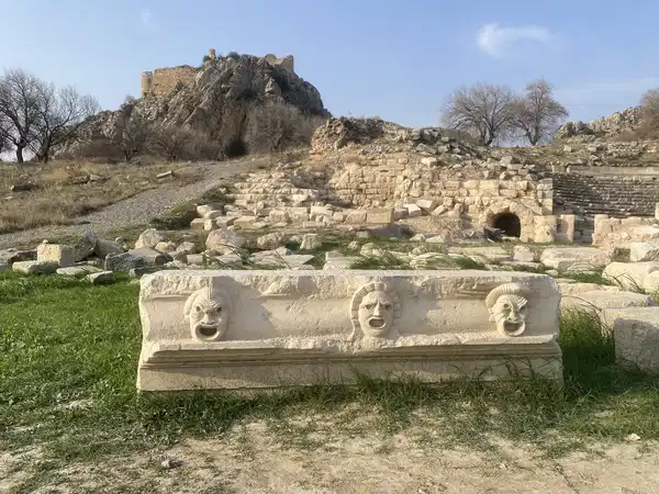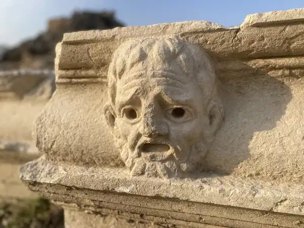 Bu yıl çalışmaların ağırlıklı olarak sütunlu cadde ve tiyatroda sürdürüldüğünü söyleyen Faris Demir, “Bu sezon biraz tiyatroya ağırlık verdik ve tiyatronun orkestra, sahne binası ve girişleri açığa çıkarıldı. Tiyatro, Roma İmparatorluğu Dönemi’ne ait, milattan sonra 1’inci yüzyılda inşa edilmiş olup, yaklaşık 5 bin kişi kapasiteye sahiptir. 2025 yılı çalışmalarından da yine tiyatroda sahne binasına ait mimari bloklar, adak yazıtları ve masklar ortaya çıkartılmıştır. Oldukça ilginç görünüme sahip mask kabartmalarında doğu ve batı kültürlerinin izlerini görmekteyiz. Ortaya çıkardığımız mimari parçalar ile sahne binasını yeniden ayağa kaldırılmamız mümkün olacaktır” diye konuştu.