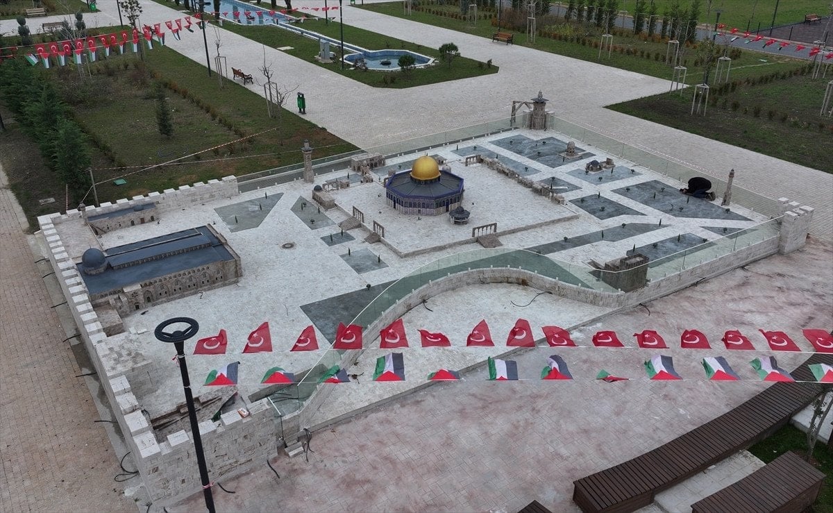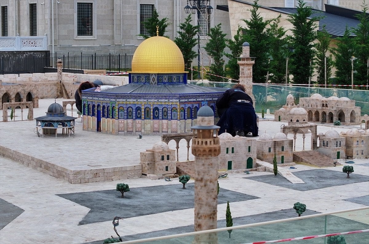 Hanife Hatun Cami ve Külliyesi’nin yanında 200 metrekarelik alana kurulan ve 70 ayrı parçadan oluşan minyatürün plastik aksamları, ressam ve çini ustalarının el işçiliğiyle aslına uygun biçimde renklendirildi. Yapının, Mescid-i Aksa Külliyesi’ndeki önemli unsurları bire bir ölçekte yansıtması hedeflendi.