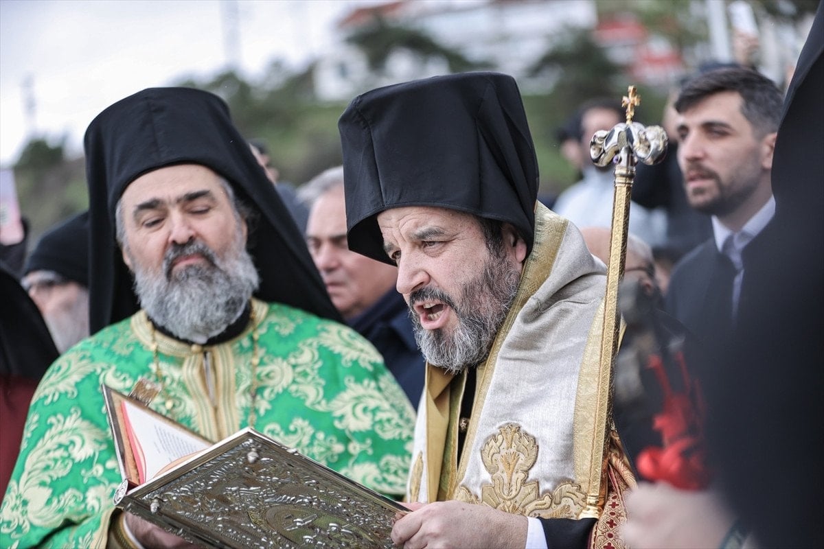 Yaklaşık 4 saat süren ayinin tamamlanmasının ardından din adamları ve törene katılanlar, kortej eşliğinde Tirilye sahiline yürüdü. Sahilde, denizden haç çıkarma geleneği yerine getirildi.
