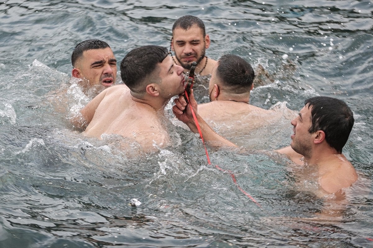 Metropolit Maksimos Vgenopulos’un kurdeleye bağlı olarak denize attığı haç için tekneden 6 kişi, soğuk ve dalgalı denize atladı. Denize girenlerin ulaştığı haç, ritüelin ardından metropolit tarafından yeniden karaya çıkarıldı.
