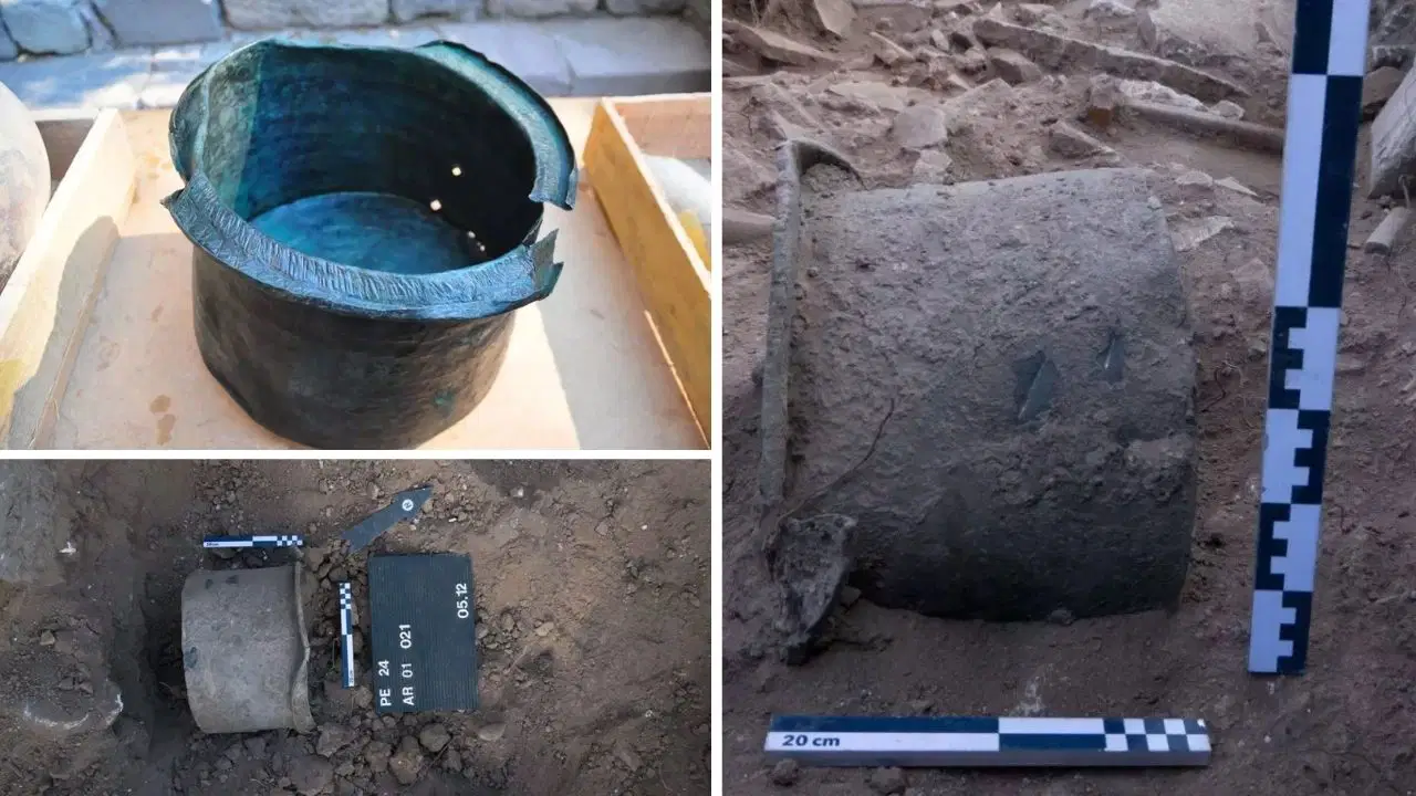 Antik dönemde bronzun pahalı ve değerli bir malzeme olduğuna dikkat çeken Kazı Başkanı Prof. Dr. Sezgin, “Buradaki özel buluntulardan bir tanesi, bu taş avlunun hemen arkasında yer alan bir havuz. Yüzme havuzu gibi değil, özellikle yağmur sularının ya da kaynak sularının toplandığı bir havuz. Bu su, kullanım amaçlı olarak burada biriktiriliyor. İlginç olan ise bu havuz ve tüm bina, muhtemelen milattan sonra 7’nci yüzyılda, belki de Arap akınları döneminde terk edilmiş. Yani yapı doğal nedenlerle yıkıma uğramış ve bir daha kullanılmamış. Bu terk edilişin ardından yapı enkaz halinde kalmış. İşte bu enkazın içinde, oldukça iyi korunmuş bir bronz kazan bulduk” diye konuştu.
