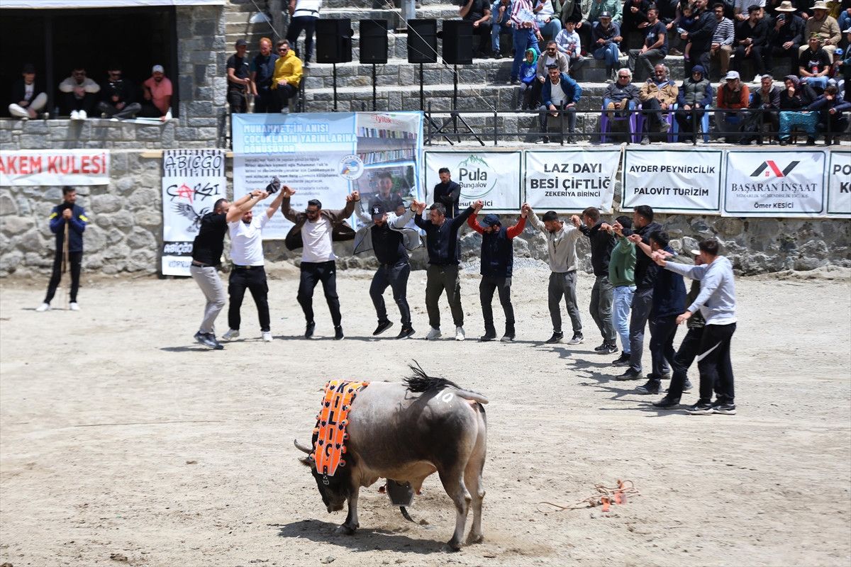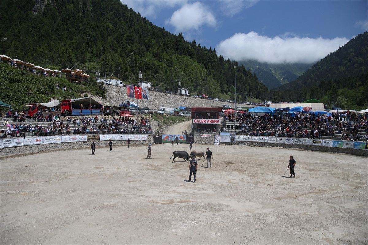 Rize’nin Çamlıhemşin ilçesine bağlı Ayder Yaylası’nın Galerdüzü mevkisinde düzenlenen festivalin ilk gününde, “mini boy”, “ayak” ve “küçük orta” kategorilerinde boğa güreşleri yapıldı.