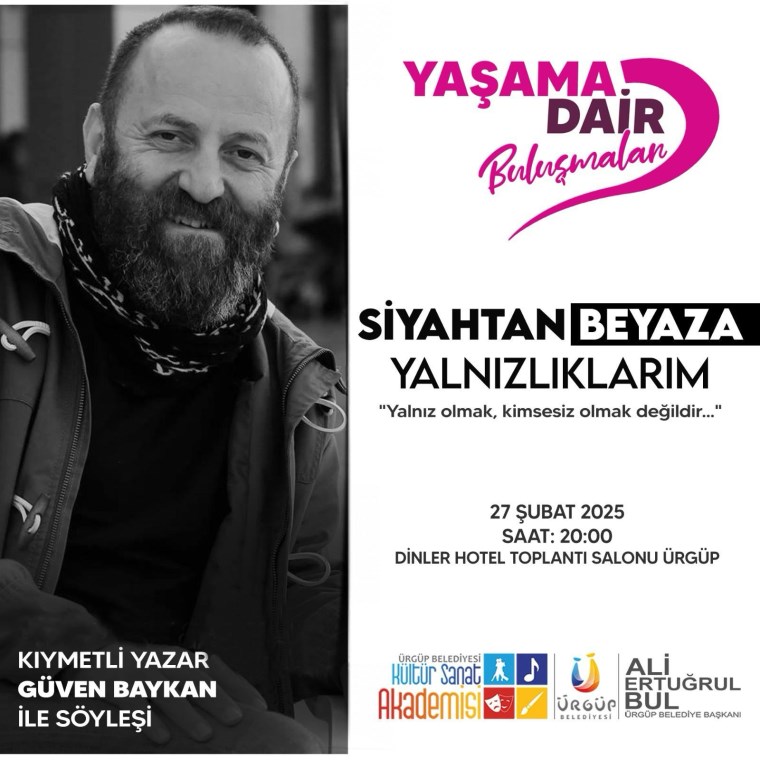 Güven Baykan’ın derinlikli anlatımıyla yalnızlığa dair farklı bir perspektif sunacağı bu etkinlik, edebiyat ve sanatseverler için kaçırılmayacak bir fırsat sunuyor. 27 Şubat 2025 saat 20:00’de Ürgüp Dinler Hotel’de gerçekleşecek bu özel söyleşi, yalnızlık üzerine düşünen, sorgulayan ve keşfetmek isteyen herkesi bekliyor.