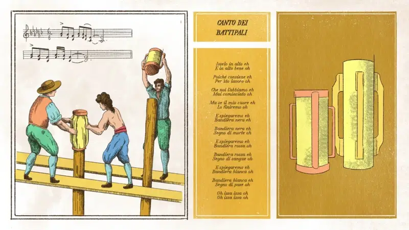 Kazıkları silt içine çakan kişilere battipali veya kazık çakanlar denirdi ve çalışırken ritmi korumalarına yardımcı olması için bir şarkı söylerlerdi