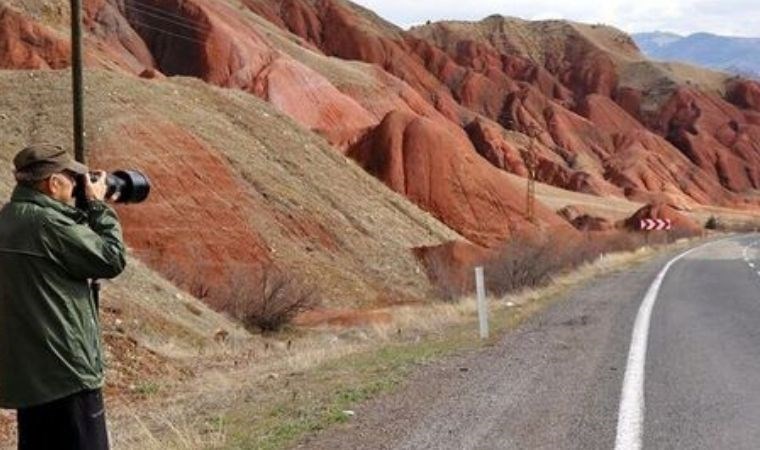 Erzurum’dan gelen doğa fotoğrafçıları, gökkuşağı ve kırmızı tepeleri, dron ve fotoğraf makineleriyle ölümsüzleştiriyor.