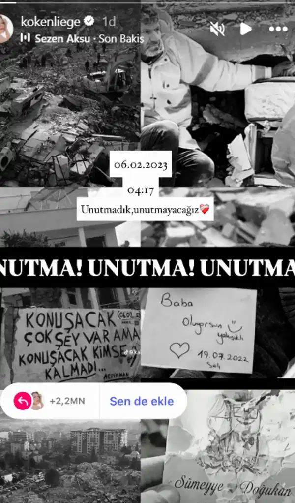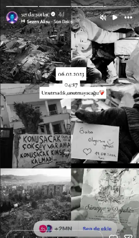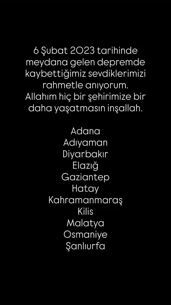 Acının merkez üssü olan illerde anma törenleri sürerken, sanat dünyası da bu büyük trajediyi unutmadı. Pek çok ünlü isim, sosyal medya platformları üzerinden yayımladıkları mesajlarla kaybettiklerimizi anarken, geride kalanların dinmeyen sızısına ortak oldu.