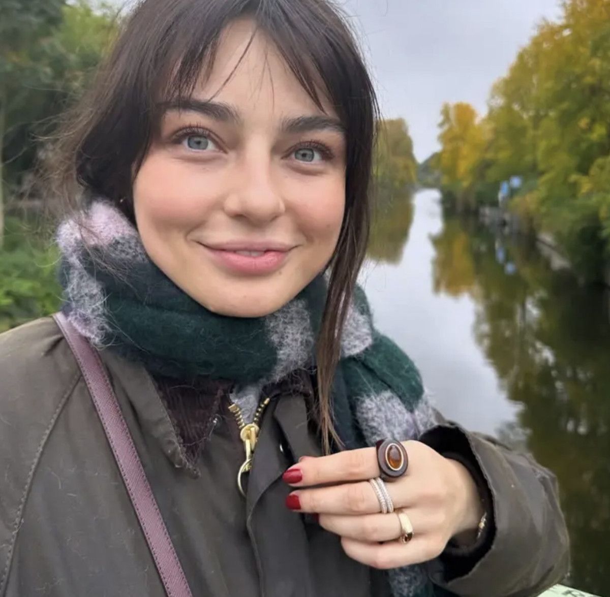 Berlin sokaklarında yürüyüş yaptığı ve kahve içtiği anları yayınlayan Turan, makyajsız haliyle de dikkati çekti.