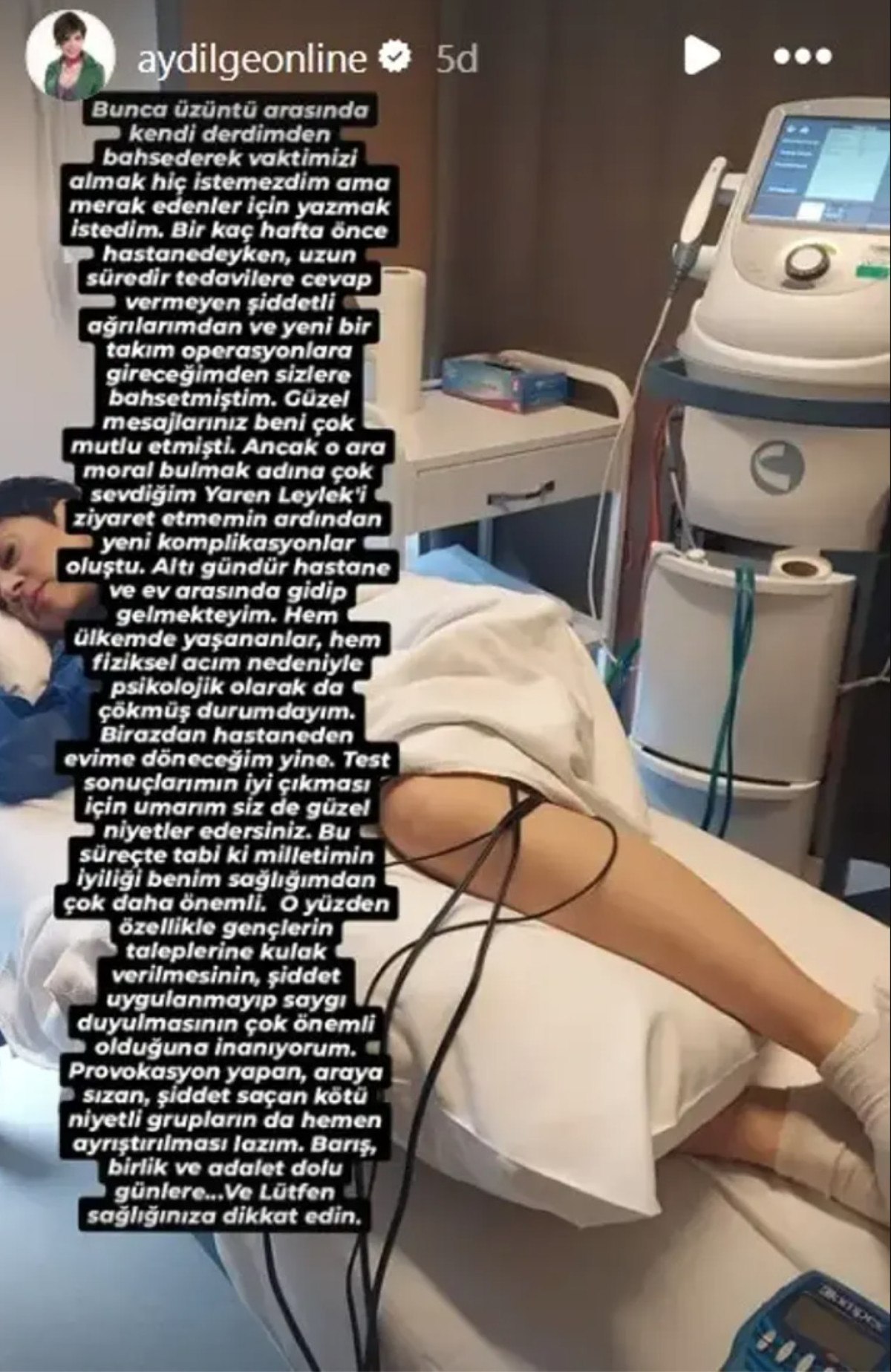 Hastane odasından paylaşım yapan Aydilge, uzun süredir tedavilere cevap vermeyen ağrılarından bahsetti.