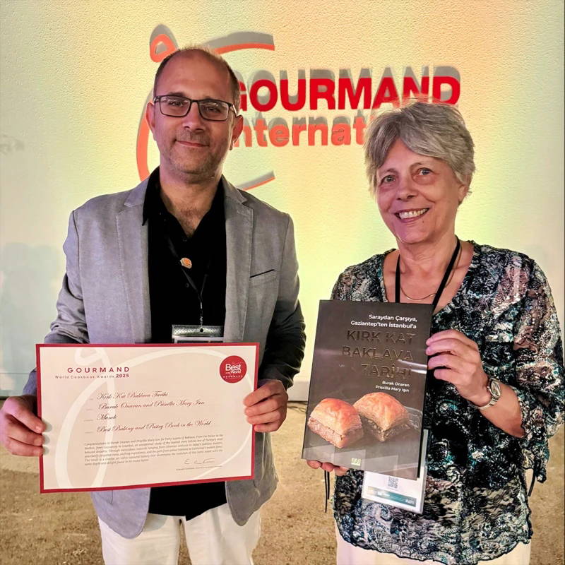 “Kırk Kat Baklava Tarihi” kitabı, dünyanın en prestijli yemek kitabı ödüllerinden biri olan Gourmand’dan ‘2025’in En İyi Tatlı Kitabı’ kategorisinde ödül aldı. Kitap, Mutfak Dostları Derneği’nden de ödül almıştı.
