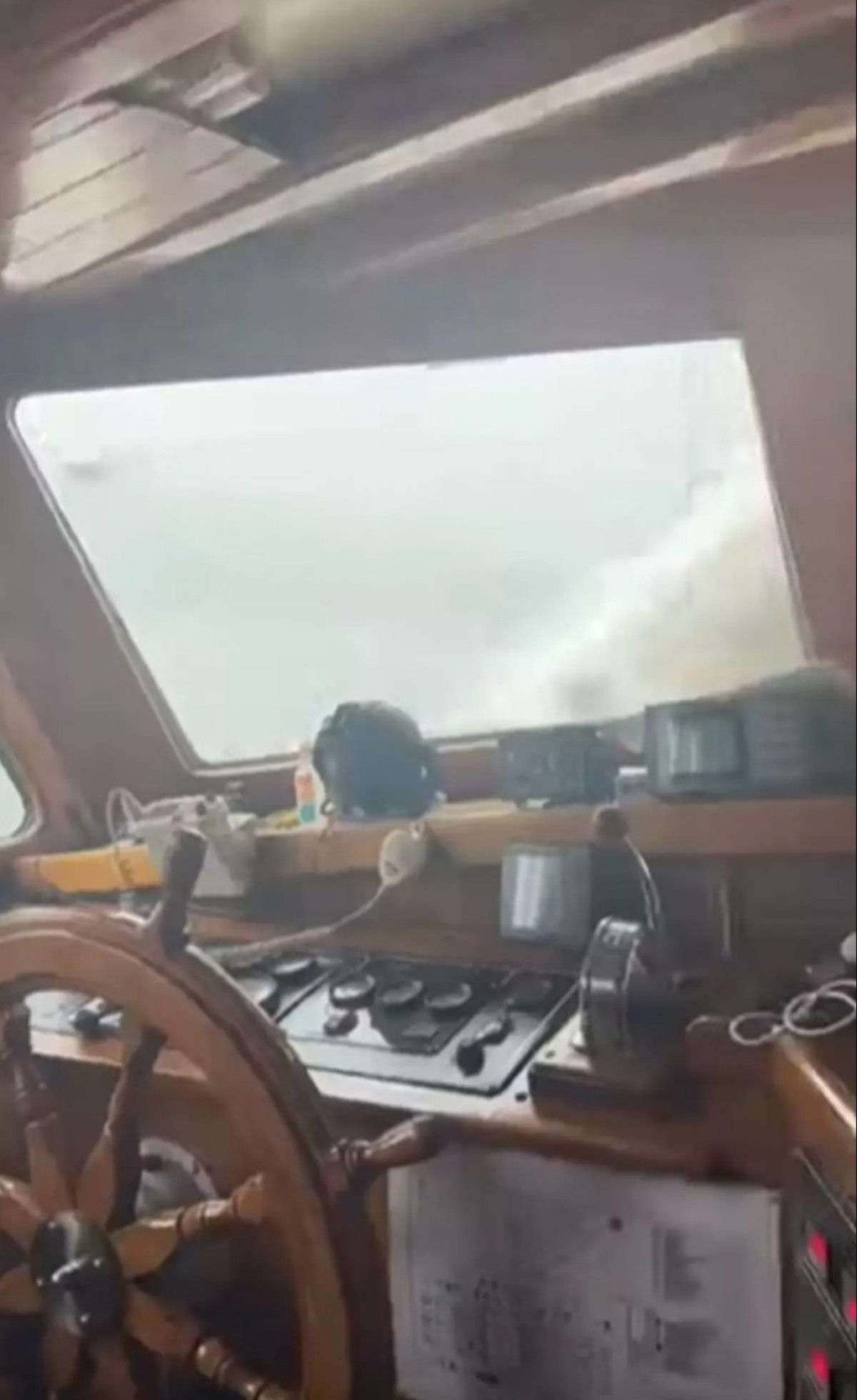 Fırtınanın ortasında kalan teknede büyük bir panik yaşansa da, kaptanın soğukkanlı davranışı sayesinde olası bir facia önlendi.