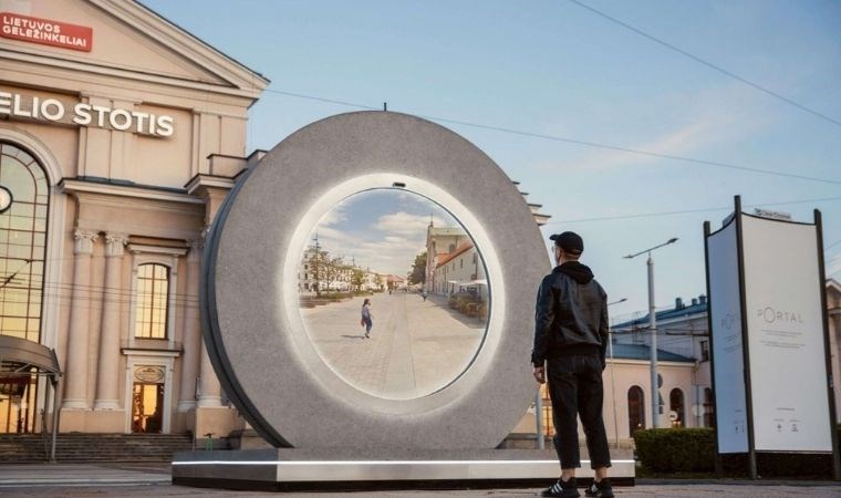 Litvanyalı sanatçı Benediktas Gylys, dünya çapında büyük ilgi gören sıra dışı bir sanat projesine imza attı. Gylys’in tasarladığı “Portal” adlı sanat eseri, farklı şehirlerde yaşayan insanları gerçek zamanlı görüntü aktarımıyla birbirine bağlıyor. Adeta bilim kurgu filmlerinden fırlamış bir sahneyi andıran bu proje, sınırları aşarak insanları fiziksel uzaklığa rağmen bir araya getiriyor.