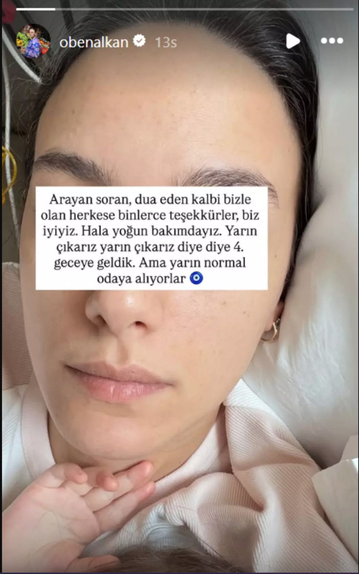 “Arayan, soran, dua eden, kalbi bizimle olan herkese binlerce teşekkürler. Biz iyiyiz. Hâlâ yoğun bakımdayız. ‘Yarın çıkar’ diye diye dördüncü geceye geldik ama yarın normal odaya alıyorlar.”