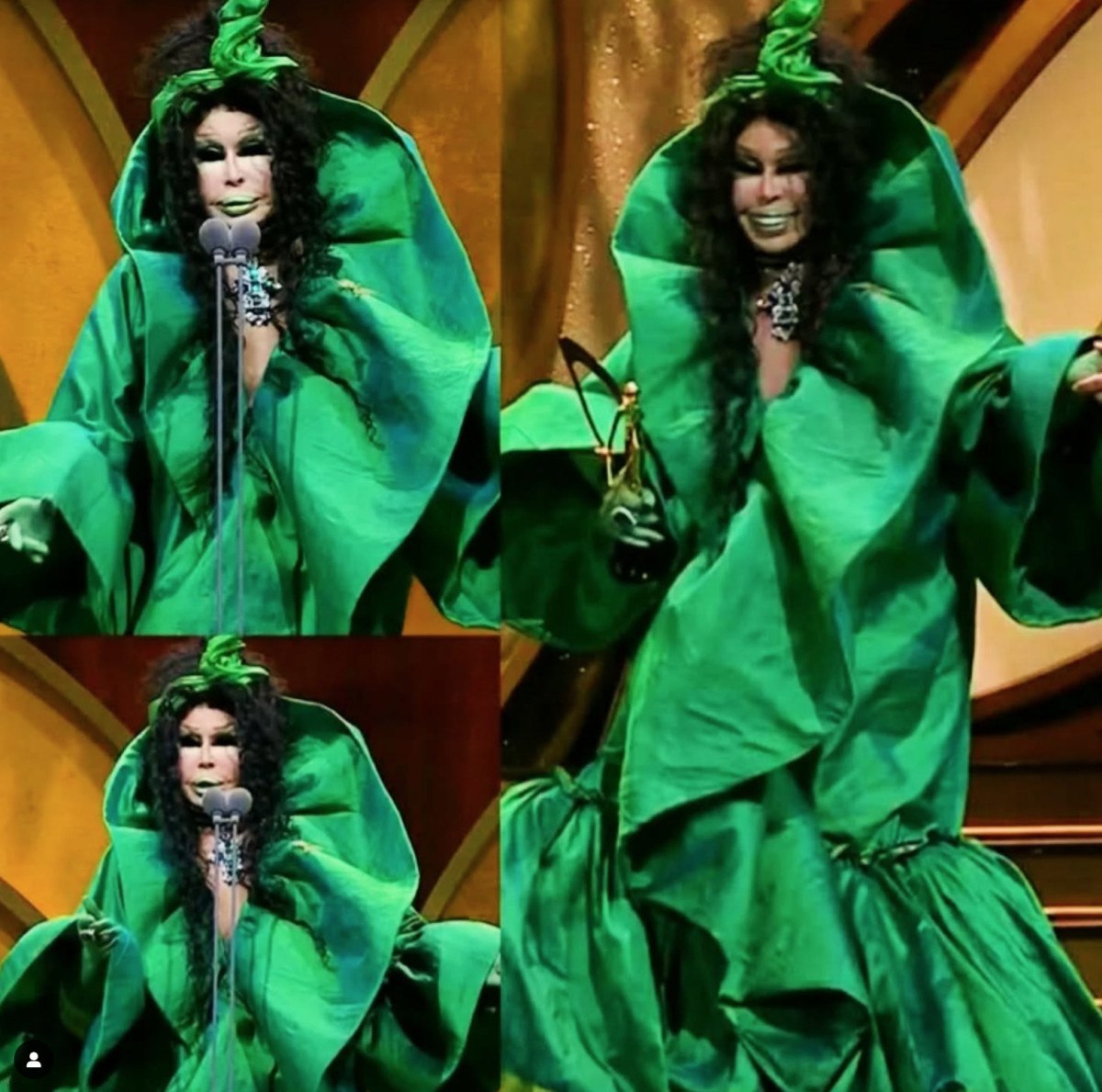 Ünlü şarkıcı, hem tercih ettiği elbisesi hem de yaptığı konuşmasıyla geceye damgasını vurdu.
