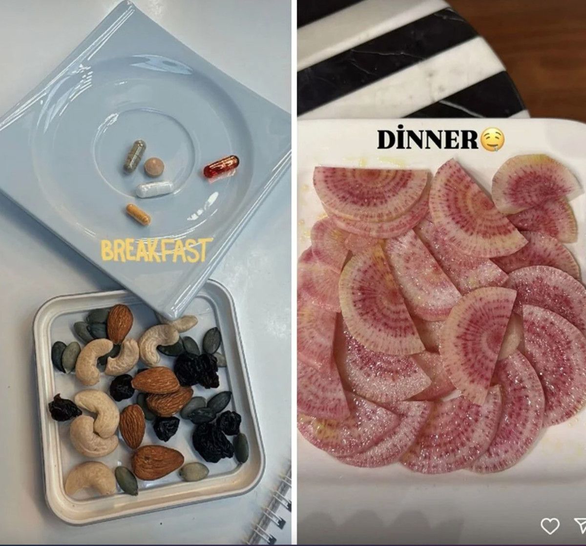 Daha önceki yayıbladığı karelerle de yorum yağmuruna tutulan ünlü isim, kahvaltıda yediği kuruyemişler ve akşam yemeğinde yediği turp ile adından söz ettirmişti.
