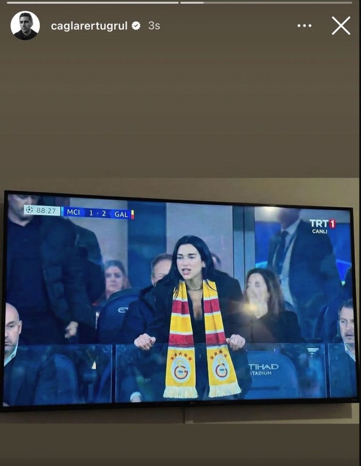 Ertuğrul, bu kez Galatasaray atkılı dünyaca ünlü yıldız şarkıcı Dua Lipa görseliyle sosyal medyanın gündemine oturdu.