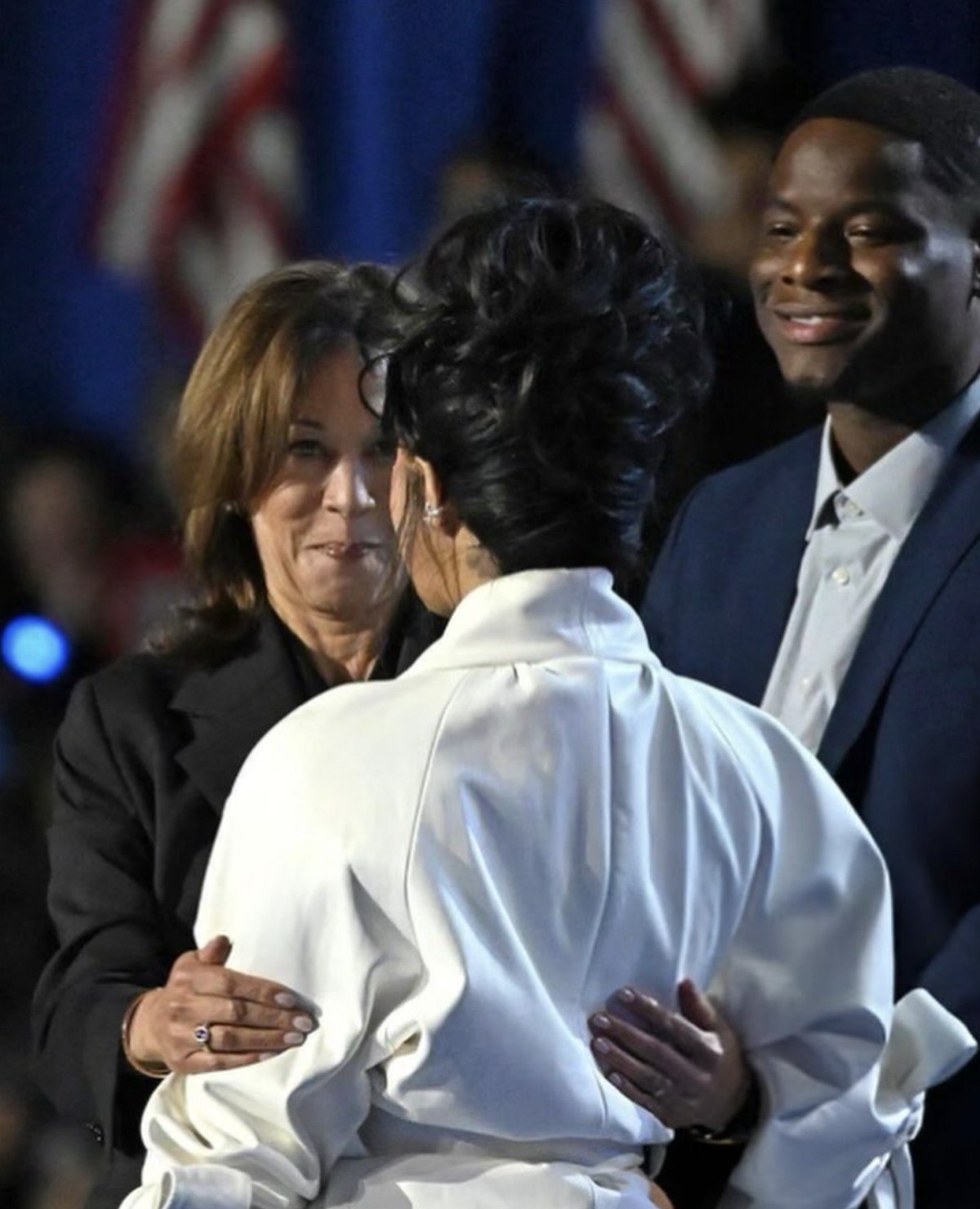 32 yaşındaki rapçi, konuşması sırasında kadınlardan yana olduğu için Kamala Harris’ten övgü dolu sözlerle bahsetti.