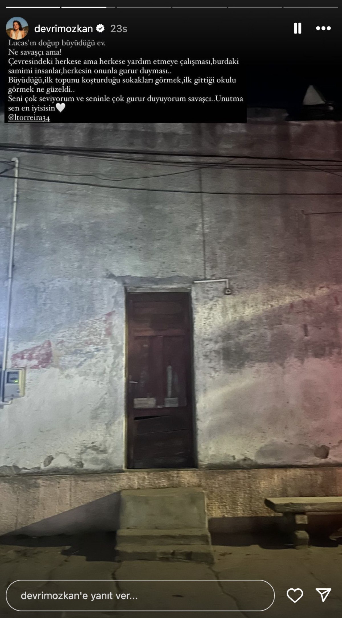Ünlü oyuncu, sevgilisinin doğduğu evi paylaşarak, Torreira’ya övgü dolu sözler söyledi. Özkan; “Lucas’ın doğup büyüdüğü ev. Ne savaşçı ama! Çevresindeki herkese ama herkese yardım etmeye çalışması, buradaki samimi insanlar, herkesin onunla gurur duyması…