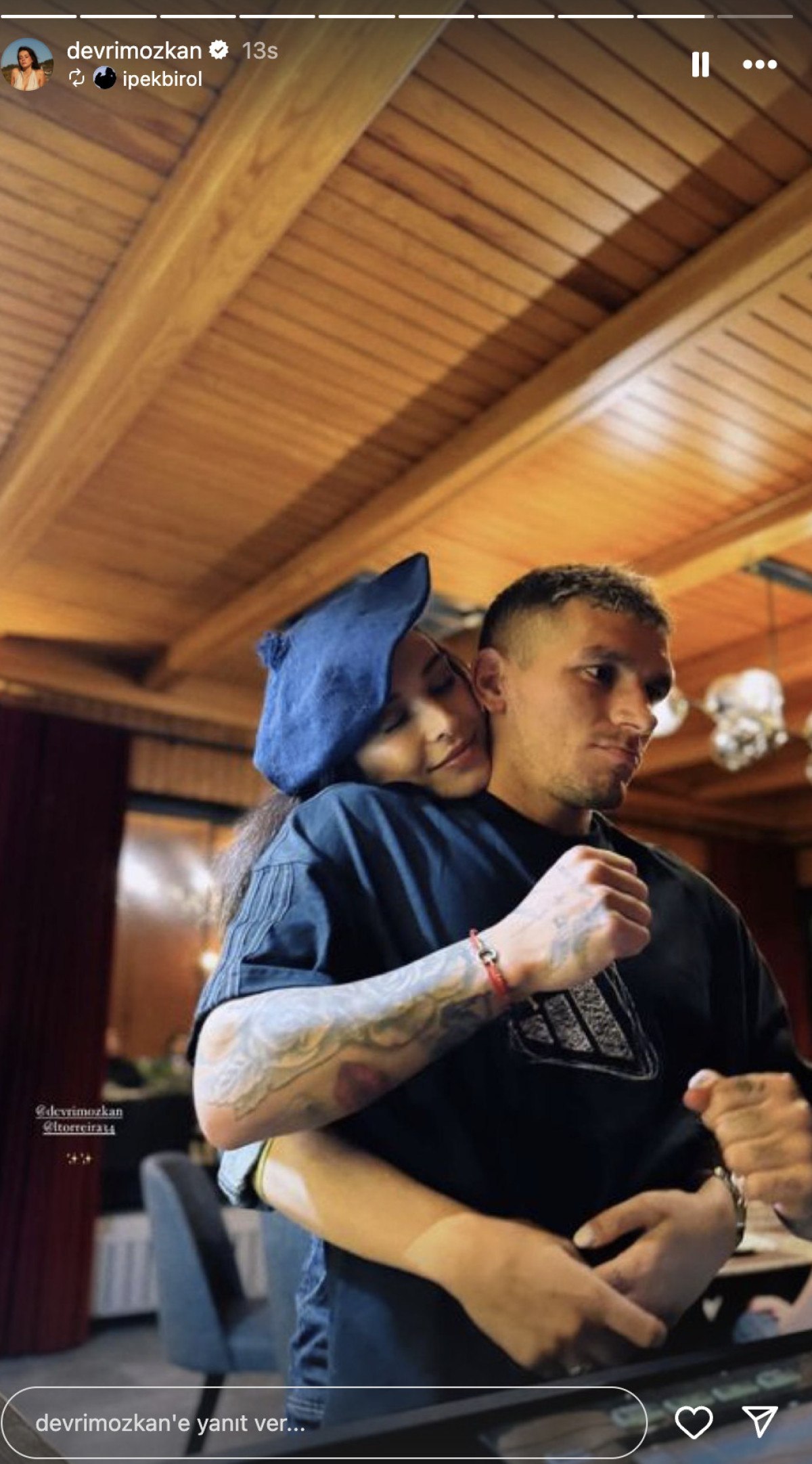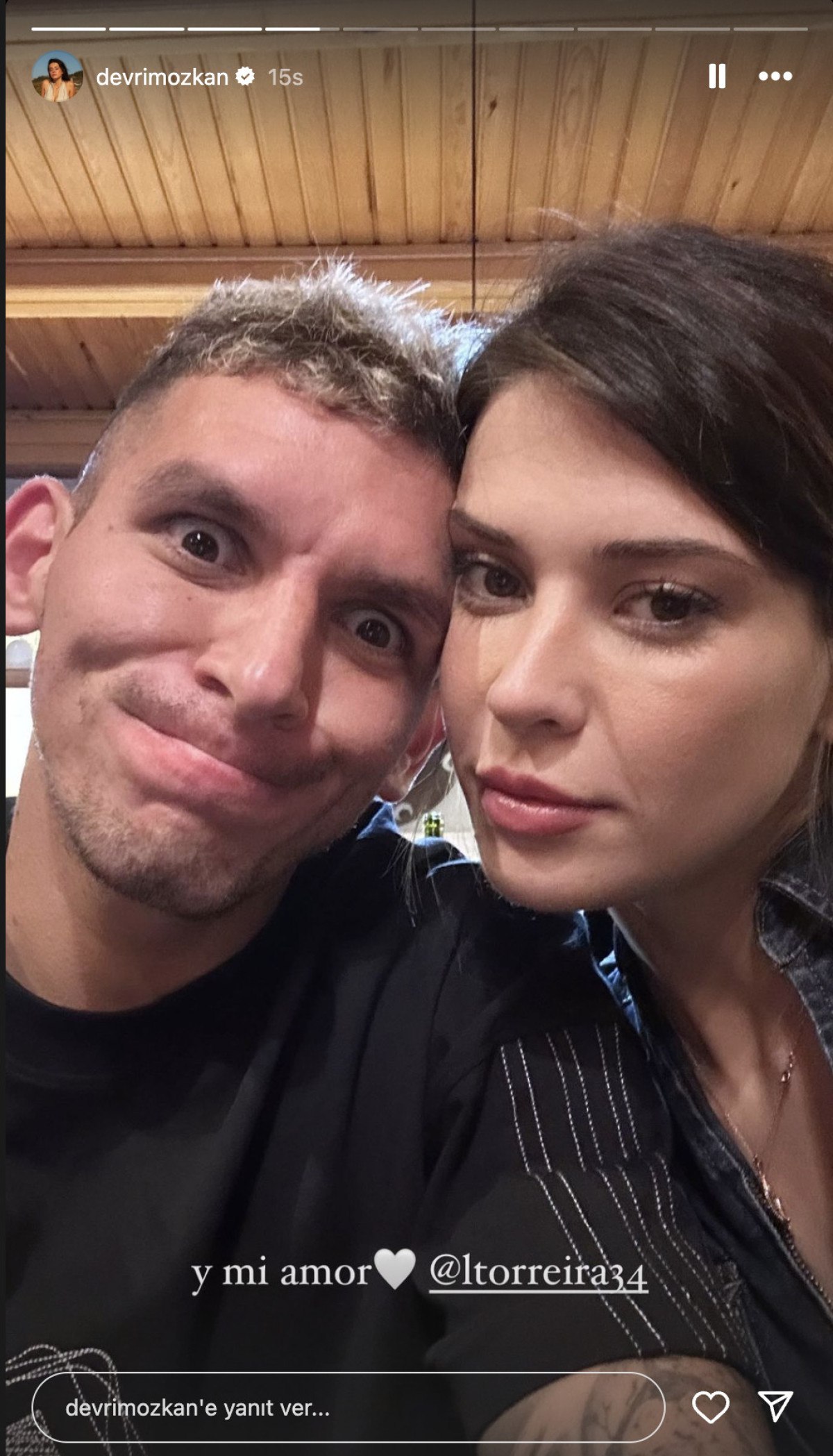 Ardından sevgilisi Lucas Torreira ile bir fotoğrafını paylaşan Devrim Özkan; “Ve aşkım” ifadesini kullandı.