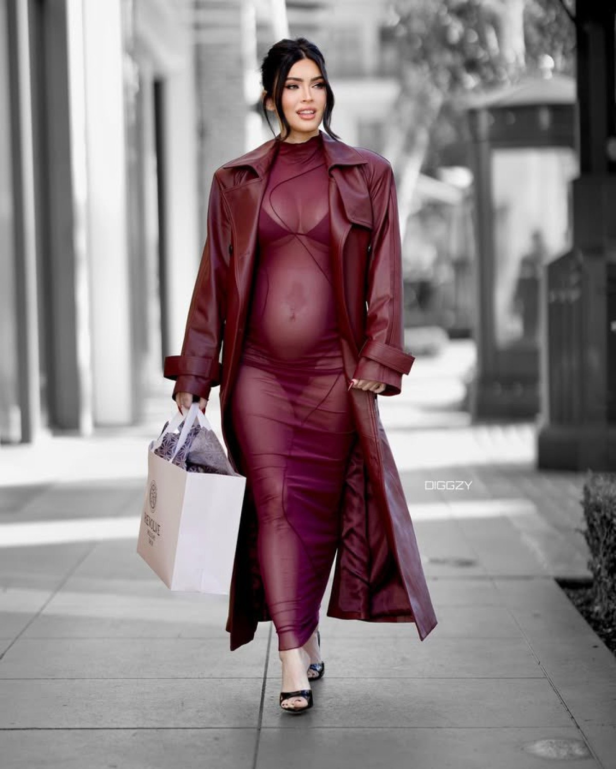 Alışveriş yaparken objektiflere yakalanan ünlü oyuncunun transparan hamilelik stili ilgi çekti. Dünyaca ünlü güzelin saçlarına yaptığı tarz Kim kkardashian’a benzetilmesine neden oldu.
