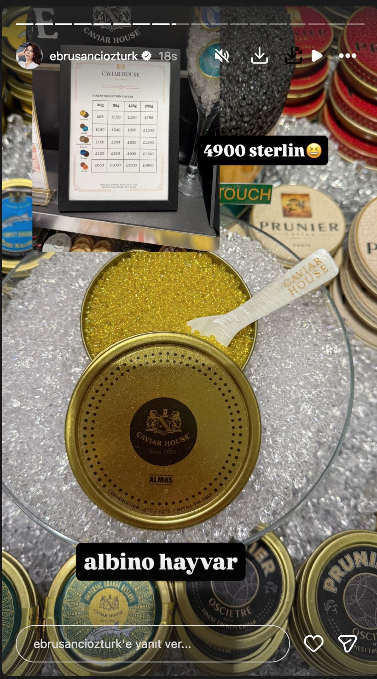 Ünlü isim ayrıca havyarın albino balıktan yapıldığını da açıklayarak özel lezzetin maliyetine dikkat çekti.