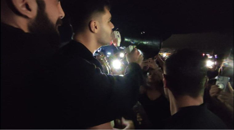 Konser alanında toplanan kalabalığa hitap eden Emir Can İğrek, megafonla bir şarkı söyleyerek hayranlarına moral verdi.