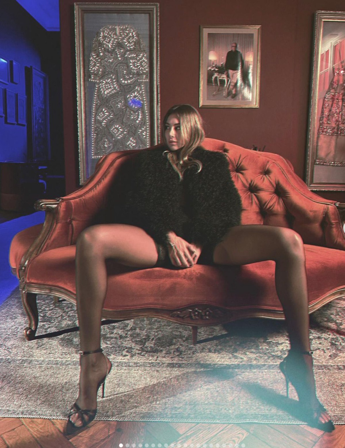 Yayınladığı fotoğraflara yorum yağan ünlü fenomen en çok bacaklarını açıp oturduğu pozla konuşuldu.