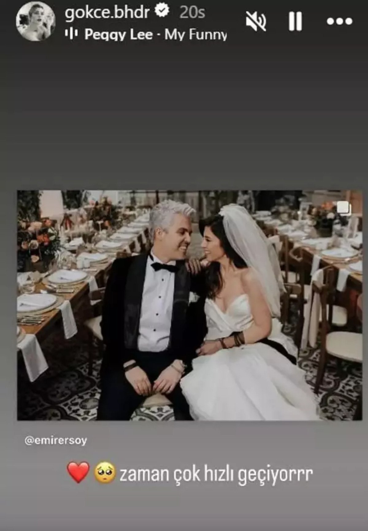 3. evlilik yıl dönümlerini kutlayan çiftten Emir Ersoy, Instagram hesabından ”3 yıl hiç anlamadan göz açıp kapayıncaya kadar geçmiş. Benim tatlı sevgilim. My Funny Valentine” notunyla düğün karelerini sevenleriyle paylaştı.