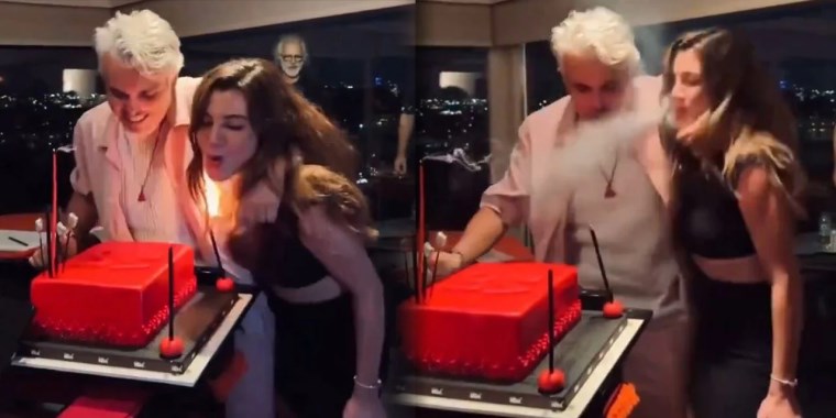 Gökçe Bahadır, eşi Emir Ersoy’un doğum günü pastasının mumları üflerken saçlarını yaktı. O anlar ise kameralara anbean yansıdı.