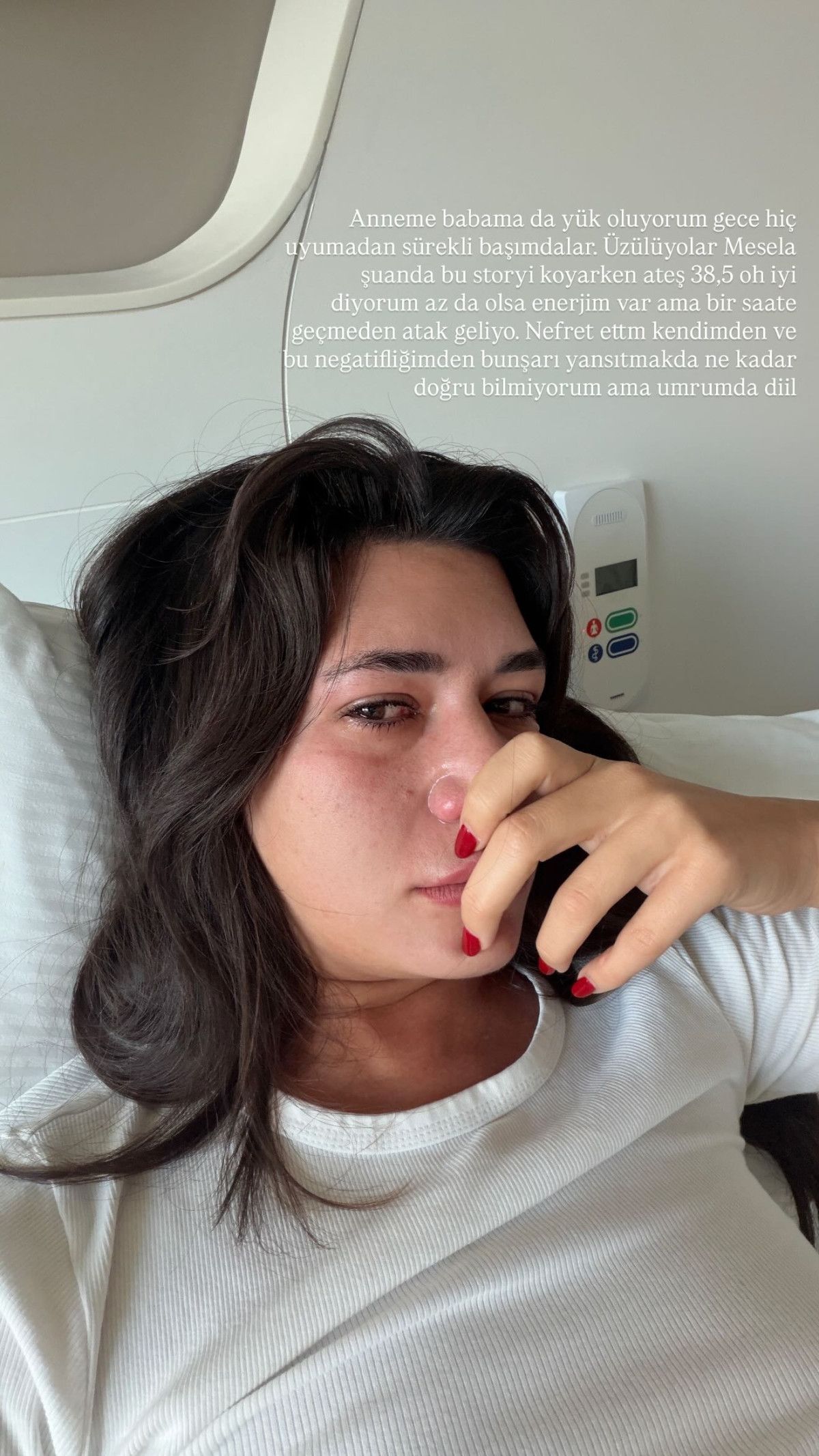 Çetinkaya son durumu hakkında bilgi verdi. Sonuçlarının yavaş yavaş çıkmaya başladığını belirten fenomen “10 gün… Kötü, iyi bir gün geçirmiyorum. Ağrılarım çok, karnım çok şiş. Halsizim, test sonuçları yavaş yavaş çıkıyor. Dalgalanmalı bir durum, moralim bozuk. Uzun bir süre daha buradayız. En son netleşince ileteceğim, sağ olun.” dedi.
