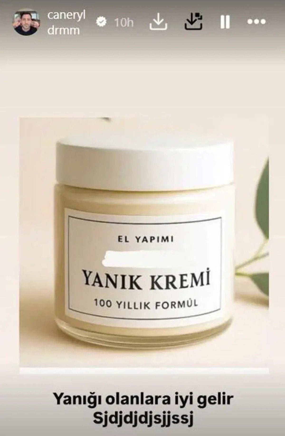 Ünlü ismin eşi Caner Yıldırım, daha sonra “yanık kremi” paylaşarak altına, ‘Yanığı olanlara iyi gelir’ yazdı.