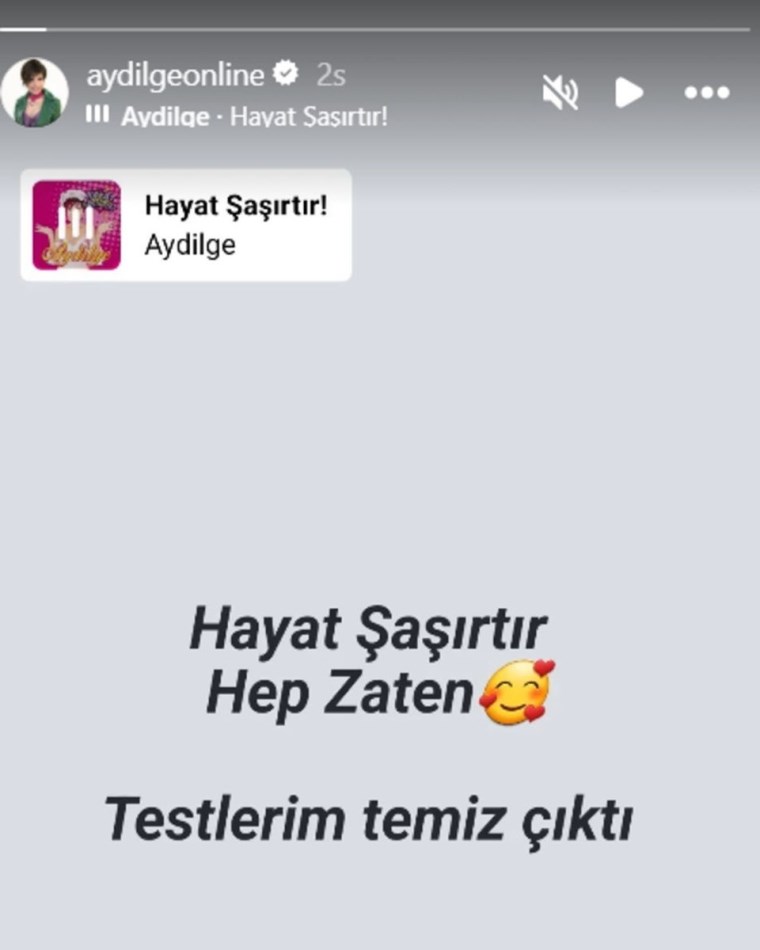 Ancak Aydilge’nin son paylaşımında müjdeli haber geldi. Şarkıcı, “Hayat şaşırtır hep zaten. Testlerim temiz çıktı” şeklinde bir açıklama yaparak rahat bir nefes aldı. Paylaşımına, aynı adlı şarkısı “Hayat Şaşırtır”ı da eklemeyi ihmal etmedi.