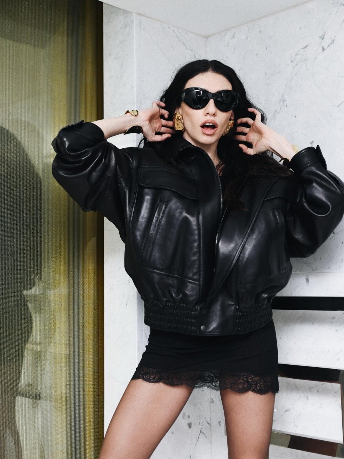Ünlü oyuncu, siyah süper mini elbisesiyle verdiği pozlarla bakışları üzerine topladı.