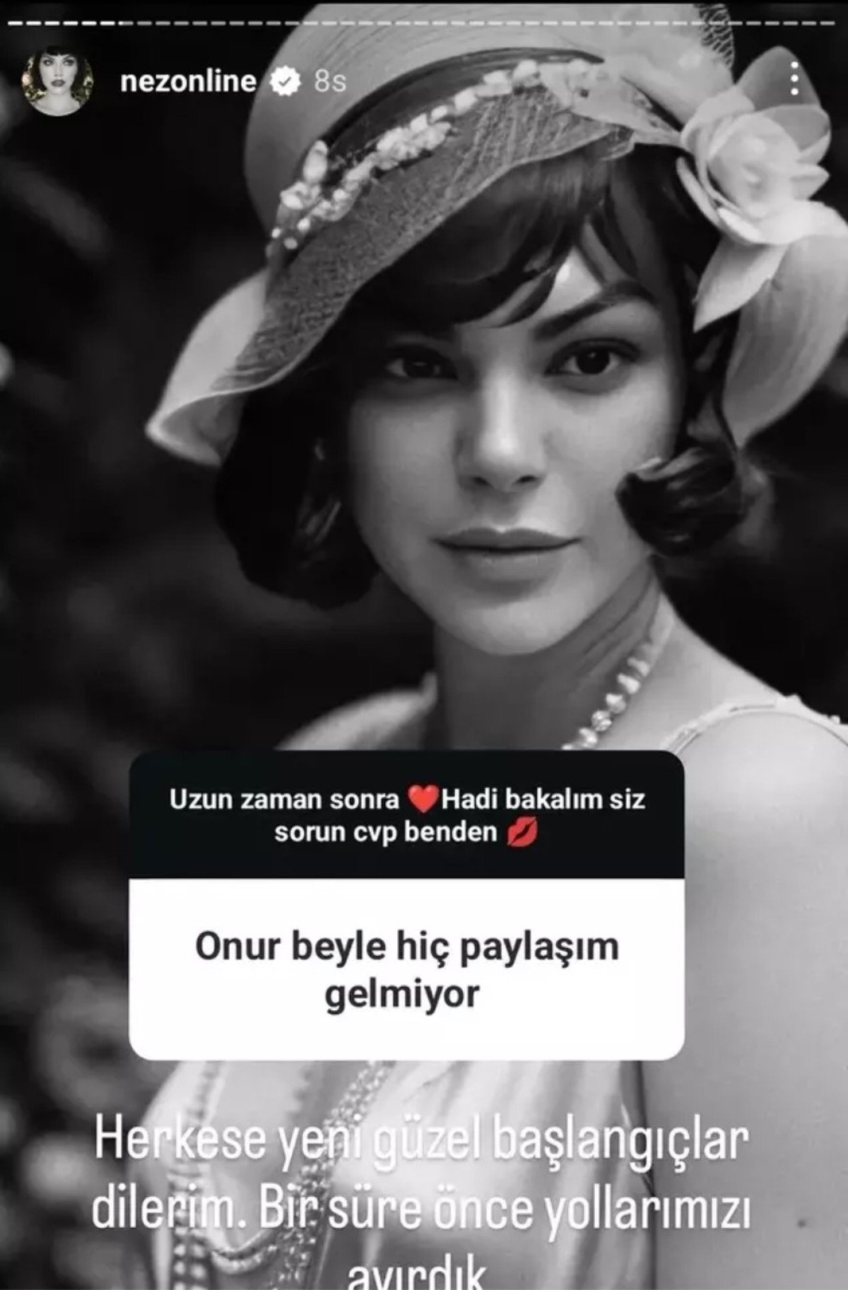 Sessiz sedasız yollarını ayıran ikili birbirini sosyal medya üzerinden takipten de çıktı. Nez sorular üzerine “Herkese yeni güzel başlangıçlar dilerim. Bir süre önce yollarımızı ayırdık” dedi.