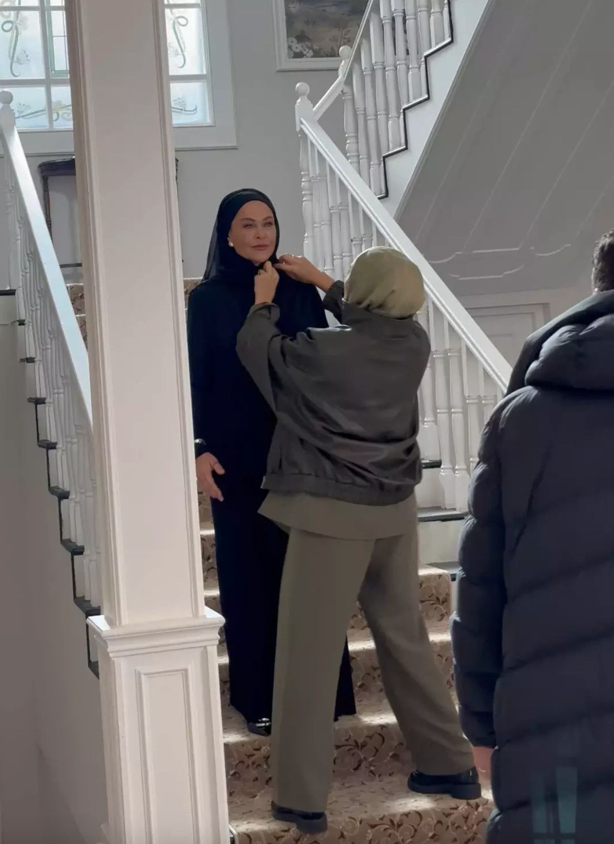 “Aynı Yağmur Altında” dizisiyle setlere geri dönen usta oyuncu, yeni rolü için başörtüsü taktı.